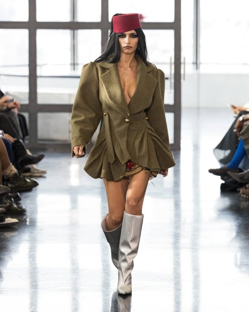 Durant ce défilé, l’ancienne star d’internet a fait trois apparitions distinctes sur le podium, une rareté qui a particulièrement retenu l’attention du public.