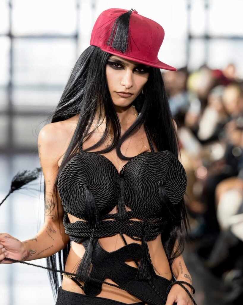 Chaque passage présentait une tenue différente, dans l’esprit audacieux et provocateur souvent associé à la marque Trashy. Les silhouettes, conçues pour attirer l’attention, ont été accompagnées d’une mise en scène dynamique typique des défilés modernes.
